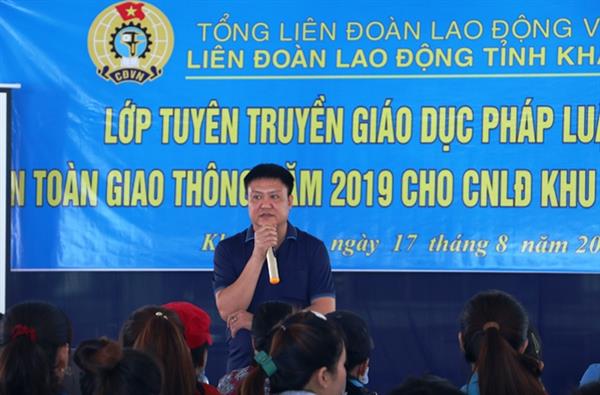 Báo cáo viên Nguyễn Nam Hải – Trưởng Ban Tổ chức LĐLĐ tỉnh tư vấn các nội dung chính với nhiều hình ảnh và video clip sinh động, dễ hiểu: Văn hóa giao thông khi tham gia giao thông; không uống rượu bia, không lạng lách đáng võng; đội mũ bảo hiểm theo đúng quy định; các biển báo cấm và những quy định xử phạt khi vi phạm giao thông ... Ngoài ra, CNLĐ được xem qua các đoạn clip tai nạn giao thông được ghi lại bằng camera trên các quốc lộ, đường cao tốc.