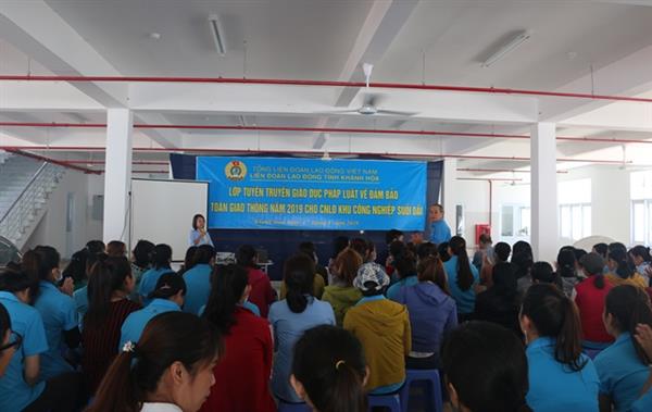 Tuyên truyền pháp luật trong CNLĐ là một trong những nhiệm vụ trọng tâm của tổ chức Công đoàn, nhất là các doanh nghiệp vừa và nhỏ. Vừa qua, LĐLĐ tỉnh phối hợp với Ban Tuyên giáo Tổng LĐLĐ Việt Nam tổ chức tuyên truyền và tư vấn đảm bảo An toàn giao thông cho 300 CNLĐ Công ty TNHH MTV trang phục phụ nữ kiểu Pháp Việt Nam. Tham dự và khai mạc lớp có đồng chí Lê Cao Thắng – Phó Trưởng ban Tuyên giáo Tổng LĐLĐ VN, đồng chí Nguyễn Hòa – Chủ tịch LĐLĐ tỉnh.