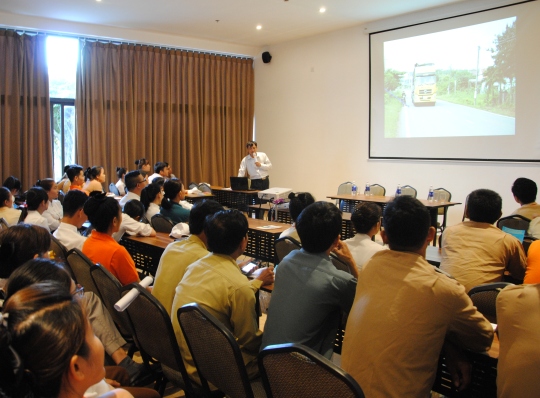 Ngoài ra, công nhân lao động còn được nghe những kỹ năng nhận biết các điểm mù khi vận hành xe trên tuyến đường quốc lộ và phòng tránh tai nạn khi tham gia giao thông qua các hình ảnh, video-clip và các biển báo.