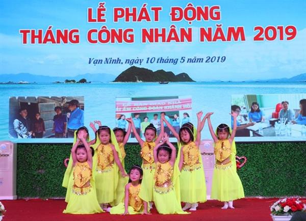 Thiết thực chăm lo cho đoàn viên với “Mỗi Công đoàn cơ sở - Một lợi ích đoàn viên”, LĐLĐ huyện Vạn Ninh tổ chức Lễ phát động Tháng công nhân năm 2019. Tham dự có đồng chí Bùi Thanh Bình – Phó Chủ tịch LĐLĐ tỉnh, đ/c Nguyễn Tấn Thoại - Thường trực Huyện ủy cùng trên 100 cán bộ công đoàn cơ sở trực thuộc.