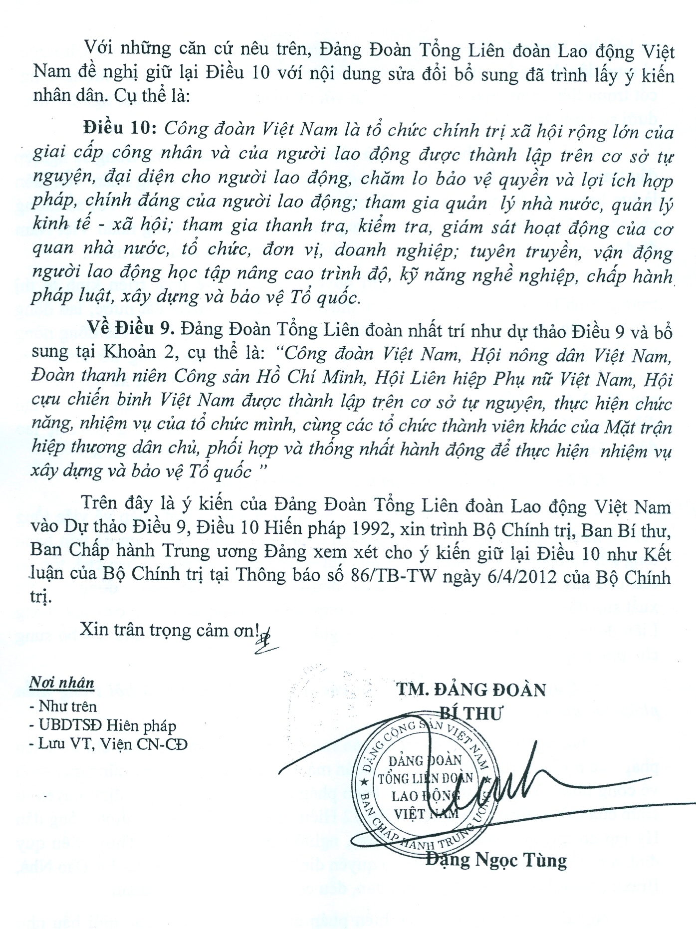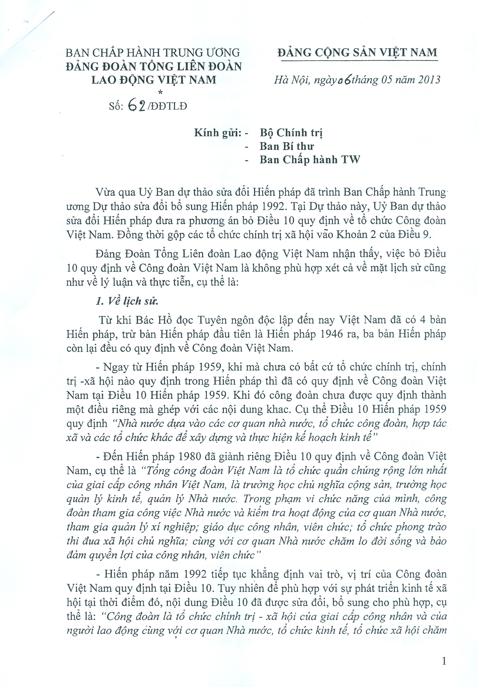 - CÔNG VĂN 621/TLĐ VỀ VIỆC SỬA ĐỔI, BỔ SUNG Đ 9, 10 HIẾN PHÁP (10/05/2013)
