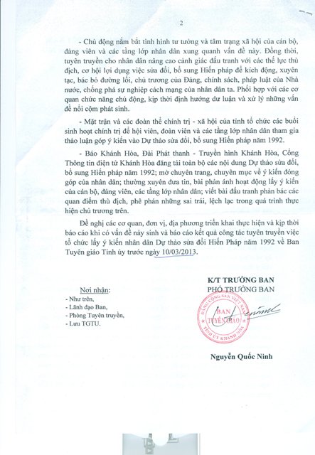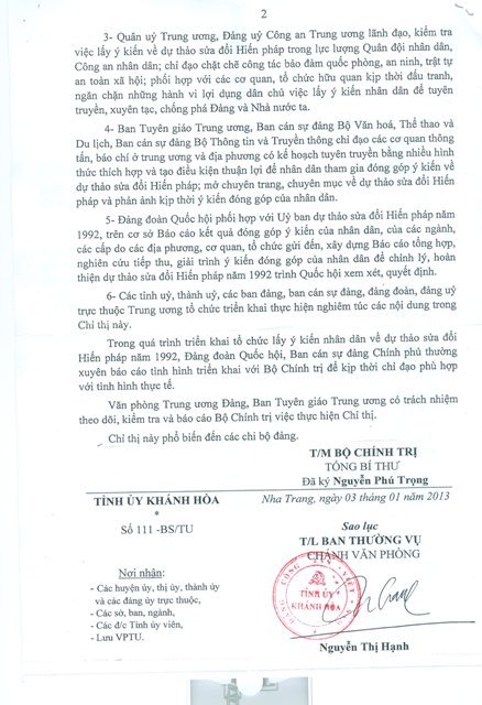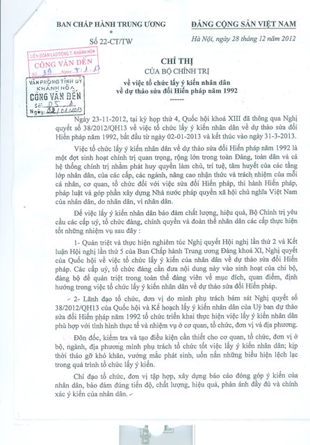 - CÔNG VĂN 62/ĐĐTLĐ GỬI BỘ CHÍNH TRỊ, BAN BÍ THƯ, BAN CHẤP HÀNH TRUNG ƯƠNG VỀ VIỆC SỬA ĐỔI ĐIỂU 9,10 HIẾN PHÁP (09/05/2013)