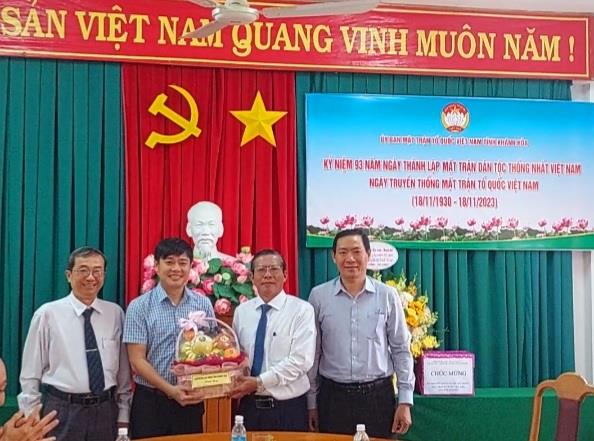 Sáng ngày 16/11, Khối thi đua MTTQ và các Tổ chức Chính trị - Xã hội tỉnh Khánh Hòa bao gồm 7 đơn vị: MTTQ tỉnh, Liên đoàn Lao động tỉnh, Hội Liên hiệp Phụ nữ tỉnh, Hội Cựu chiến binh tỉnh, Tỉnh Đoàn, Hội Nông dân tỉnh và Liên hiệp các Hội khoa học và Kỹ thuật tỉnh đến thăm, chúc mừng Ủy ban MTTQ Việt Nam tỉnh nhân kỷ niệm 93 năm Ngày thành lập Mặt trận Dân tộc thống nhất – Ngày truyền thống Mặt trận Tổ quốc Việt Nam (18/11/1930 – 18/11/2023).