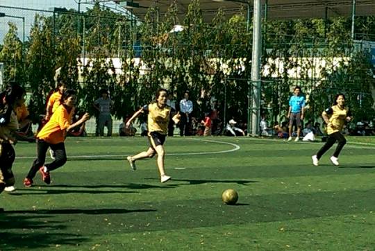 Vận động viên đang tham gia thi đấu trận chung kết bóng đá mini nữ
