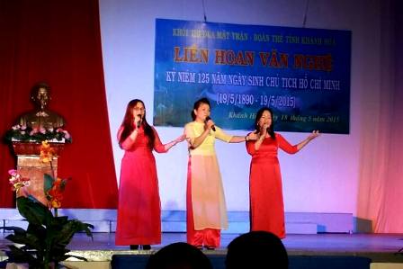 Tối 18/5, tại Hội trường Nhà Thiếu nhi Khánh Hòa, CĐ Khối Mặt trận-Đoàn thể tỉnh Khánh Hòa tổ chức Liên hoan văn nghệ chào mừng kỷ niệm 125 năm ngày sinh Bác Hồ kính yêu (19/5/1890-19/5/2015).