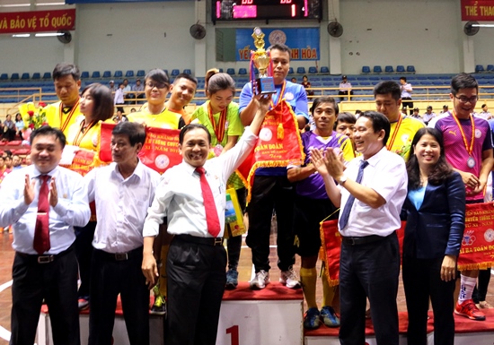 Lãnh đạo Công ty Yến sào Khánh Hòa trao cờ, cúp cho các đơn vị đạt giải