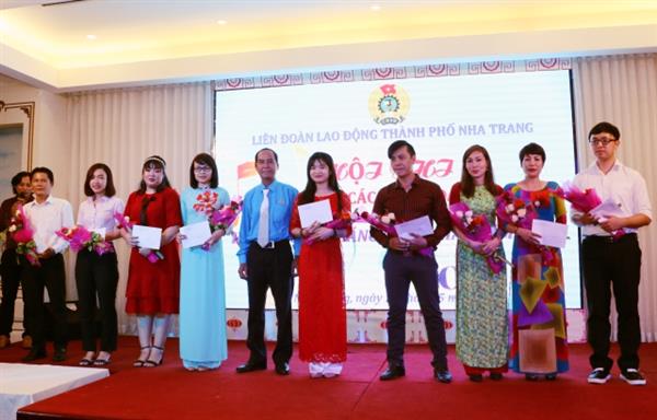 Đ/c Đặng Thuận - Phó Chủ tịch LĐLĐ TP. Nha Trang trao giải cho các thí sinh xuất sắc