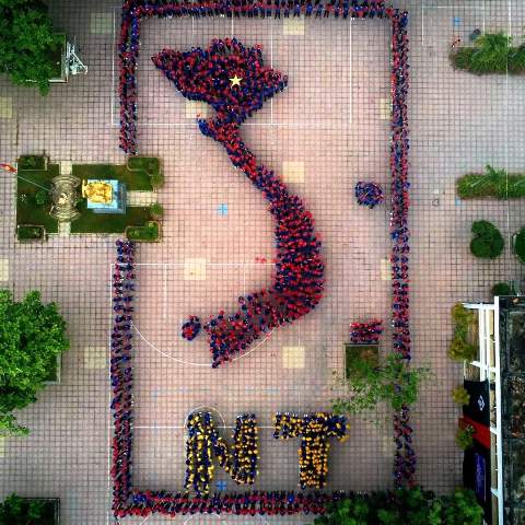 Chương trình xếp hình Bản đồ Việt Nam của hơn 1.000 học sinh Trường THPT Nguyễn Trãi