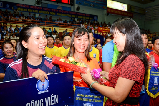 Bà Nguyễn Thị Hằng – Phó Chủ tịch LĐLĐ tỉnh Khánh Hòa tặng hoa cho các đội bóng