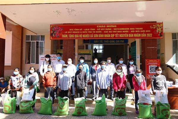 Ngày 21/01, các đơn vị giúp đỡ xã Sơn Bình, huyện Khánh Sơn gồm: Ban Tổ chức Tỉnh ủy, Sở Xây dựng, Liên đoàn Lao động tỉnh, Cục Dự trữ Nhà nước Khu vực Nam Trung Bộ, Liên đoàn Quy hoạch và Điều tra tài nguyên nước miền Trung, Vietcombank Chi nhánh Nha Trang đã đến thăm, tặng quà Tết cho các gia đình chính sách, có công, hộ nghèo địa phương.