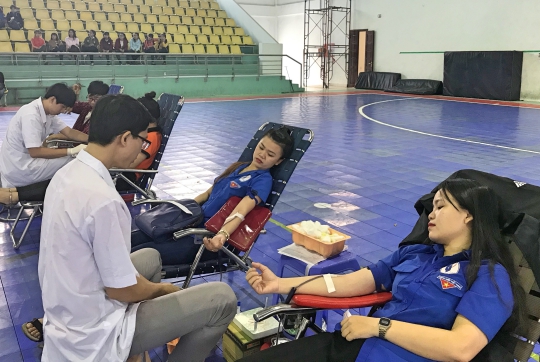 Đoàn viên,HS Trường Cao đẳng sư phạm Trung ương Nha Trang tham gia hiến máu tình nguyện