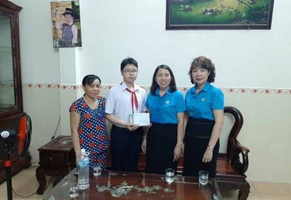 Đ/c Trương Minh Hà - Chủ tịch CĐN Giáo dục tỉnh (đứng giữa) thăm và tặng quà