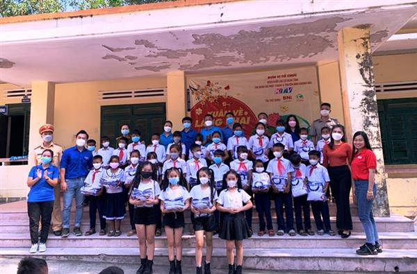 Đoàn trao tặng đồng phục và dụng cụ học tập cho các em học sinh
