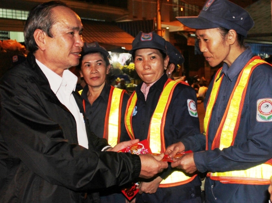 thăm và tặng quà động viên CNLĐ Công ty CP Môi trường Đô thị Nha Trang làm ca đêm