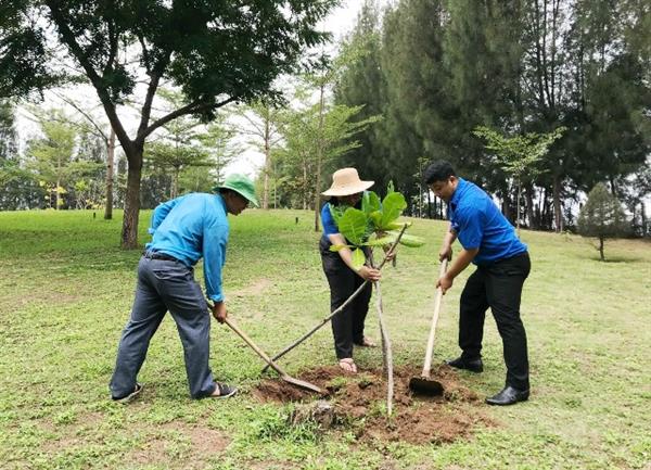 Tại đây, đoàn viên thanh niên đã phối hợp cùng cán bộ Khu tưởng niệm trồng 12 loại cây mới như: Bàng vuông, xoài, phi lao. Hoạt động đã phát huy vai trò xung kích, tình nguyện của cán bộ đoàn viên trong các hoạt động bảo vệ môi trường và ứng phó với biến đổi khí hậu.