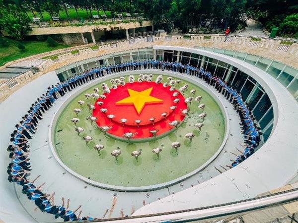 220 đội viên tiêu biểu TP HCM trước Vòng tròn 64 bông hoa tượng trưng cho sự bất tử, trường tồn của các liệt sĩ đã hy sinh