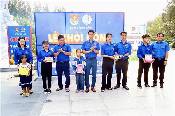Tại đây, Huyện đoàn Cam Lâm đã giao các công trình phần việc cho thanh niên các đơn vị: công trình thanh niên khu vui chơi thiếu nhi cho đoàn xã Cam An Nam với số tiền 20 triệu đồng; đường cờ Tổ Quốc trị giá 5 triệu đồng cho đoàn xã Sơn Tân; trao tặng 20 áo phao cho Đồn biên phòng Cam Hải Đông; tặng 30 lá cờ Tổ quốc cho Khu tưởng niệm chiến sĩ Gạc Ma; trao tặng 2.000 cây xanh cho đơn vị Trạm Radar 22. Kinh phí được Huyện đoàn Cam Lâm vận động từ các mạnh thường quân trên địa bàn huyện; các đoàn cơ sở đã trao 14 suất quà cho 14 em học sinh có hoàn cảnh khó khăn đã được nhận đỡ đầu.