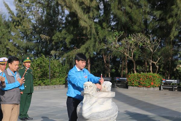 Đ/c Bùi Hoài Nam - Chủ tịch LĐLĐ tỉnh dâng hương tưởng niệm tại cụm tượng đài "Những người nằm lại phía chân trời"
