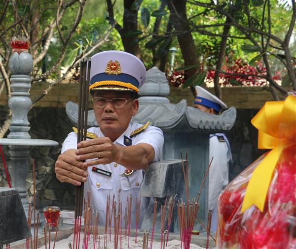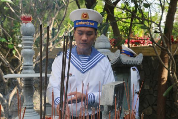 Các chiến sĩ thắp nén hương tại khu mộ gió
